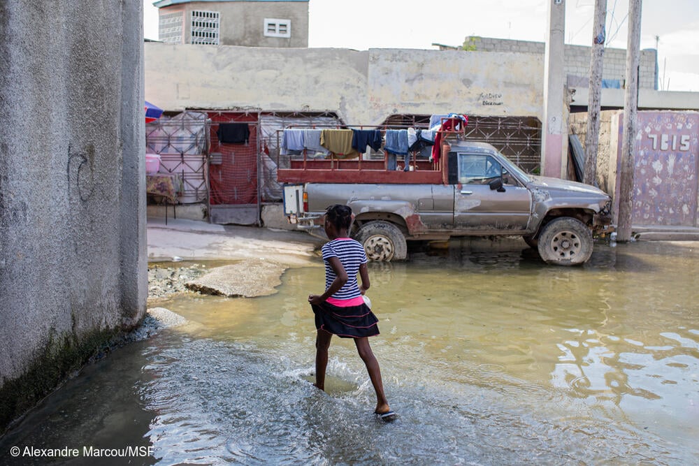 Haití Cité l’Eternel: parte del barrio de Cité l’Eternel está inundado debido a la obstrucción de los canales causada por una mala gestión de los residuos. El cólera se propaga rápidamente en zonas con un tratamiento inadecuado de las aguas residuales y sin acceso a agua limpia.